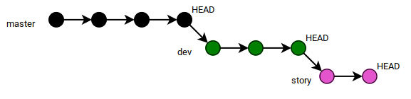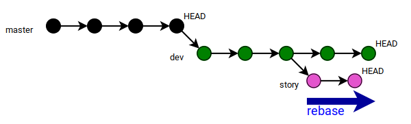 git checkout story git rebase dev